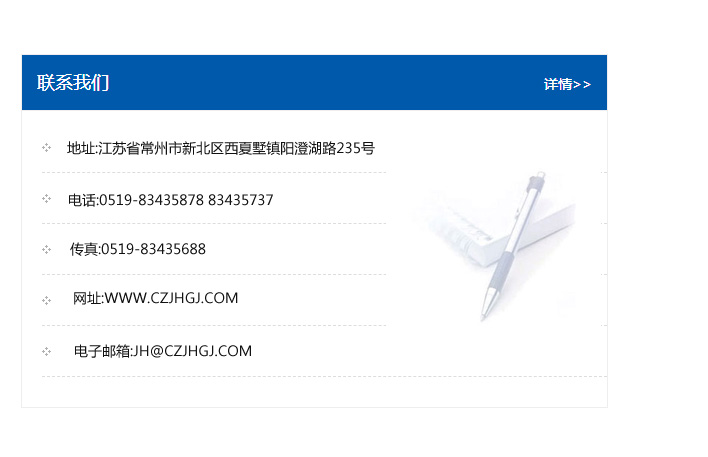 地址:常州市新北區友邦商務大廈1幢16、17層  電話:0519-85101652  傳真:0519-85112595  郵編:213022  網址:www_cz-jiayue_cn.lxstc.com  郵箱:xiajifengaa@163.com